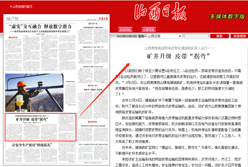 去年11月20日,鎮(zhèn)城底礦井下南翼下組第一部高硫煤主運(yùn)輸拐彎皮帶改造竣工驗(yàn)收,取代了服役長(zhǎng)達(dá)16年的兩部老式皮帶運(yùn)輸機(jī)。由此,該礦成為山西焦煤集團(tuán)首個(gè)使用拐彎皮帶運(yùn)輸機(jī)的礦井。
