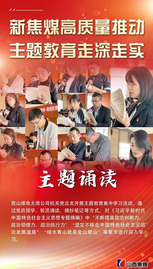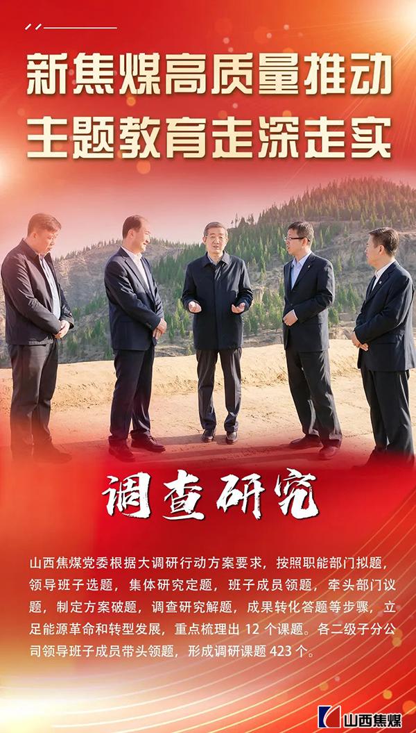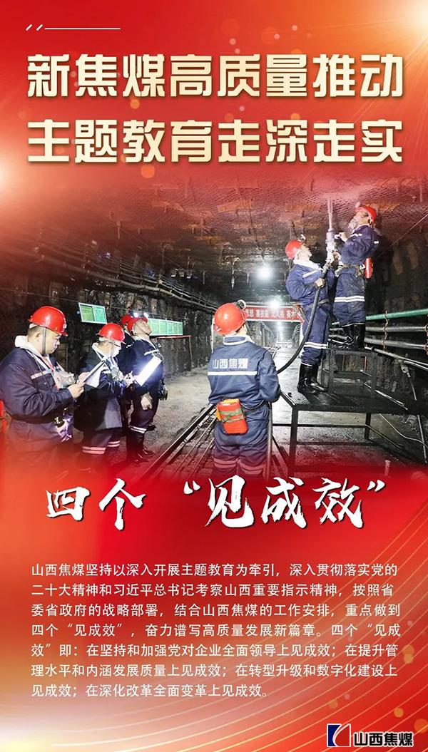 學(xué)習(xí)貫徹習(xí)近平新時(shí)代中國特色社會(huì)主義思想主題教育開展以來,山西焦煤黨委緊緊圍繞主題教育“學(xué)思想、強(qiáng)黨性、重實(shí)踐、建新功”總要求,以系統(tǒng)謀劃開篇布局,以理論學(xué)習(xí)夯實(shí)基礎(chǔ),以調(diào)查研究破解難題,以推動(dòng)發(fā)展檢驗(yàn)成效,通過多種形式,全面組織學(xué)習(xí)研討,讓全體黨員干部經(jīng)受思想淬煉、精神洗禮,引導(dǎo)大家在深入、扎實(shí)上下功夫,在以學(xué)鑄魂、以學(xué)增智、以學(xué)正風(fēng)、以學(xué)促干上見實(shí)效,持續(xù)將學(xué)習(xí)工作熱情轉(zhuǎn)化為攻堅(jiān)克難、干事創(chuàng)業(yè)的強(qiáng)大動(dòng)力,在堅(jiān)持和加強(qiáng)黨對企業(yè)全面領(lǐng)導(dǎo)上、在提升管理水平和內(nèi)涵發(fā)展質(zhì)量上、在轉(zhuǎn)型升級和數(shù)字化建設(shè)上、在深化改革全面變革上實(shí)現(xiàn)四個(gè)“見成效”,以新氣象、新作為推動(dòng)新焦煤高質(zhì)量發(fā)展取得更大成效。