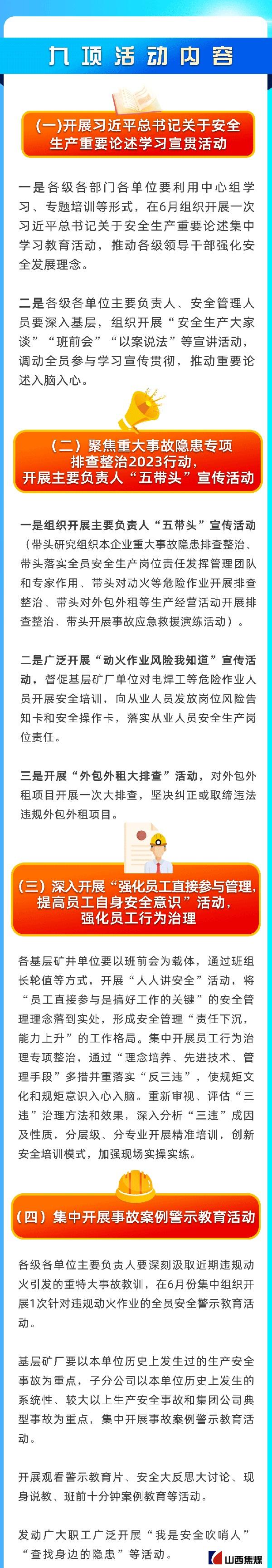 今年6月是第22個(gè)全國“安全生產(chǎn)月”,主題為“人人講安全、個(gè)個(gè)會(huì)應(yīng)急”。根據(jù)國務(wù)院安委辦和山西省安委辦關(guān)于開展2023年“安全生產(chǎn)月”活動(dòng)的通知要求,山西焦煤結(jié)合安全生產(chǎn)工作實(shí)際,決定深入開展“安全生產(chǎn)月”活動(dòng)。