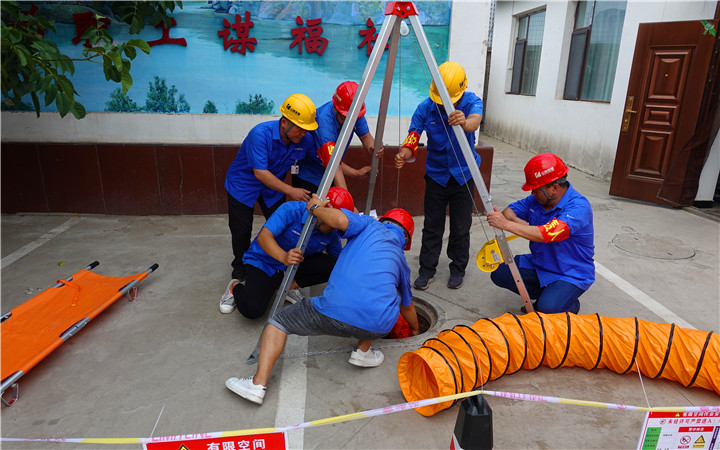 演練分為救援、保衛(wèi)、聯(lián)絡(luò)、保障、善后、調(diào)查等6個小組。演練前,在確保作業(yè)審批手續(xù)完善、安全交底規(guī)范的前提下,工作人員對各種防護(hù)器材及日常應(yīng)急物資進(jìn)行了檢查,重點對五點式安全帶、三腳架的正確使用進(jìn)行了詳細(xì)講解。